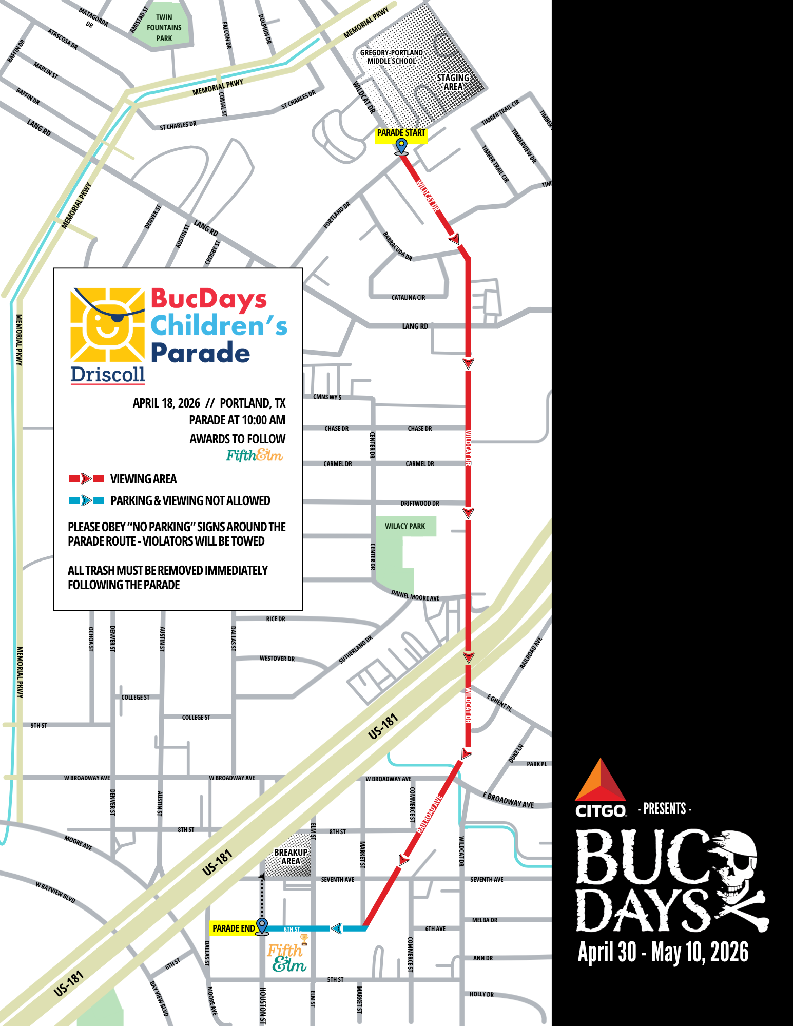 NEW this year — the parade will take place in Portland, Texas, right across our brand-new Harbor Bridge! It will start at Gregory-Portland Middle School, continue down Wildcat Dr., and end at the new state-of-the-art venue at 5th and Elm St.! After the parade, the fun doesn’t stop — hang out at this amazing new venue with family and friends, enjoy live music, and celebrate our students during the award presentation.